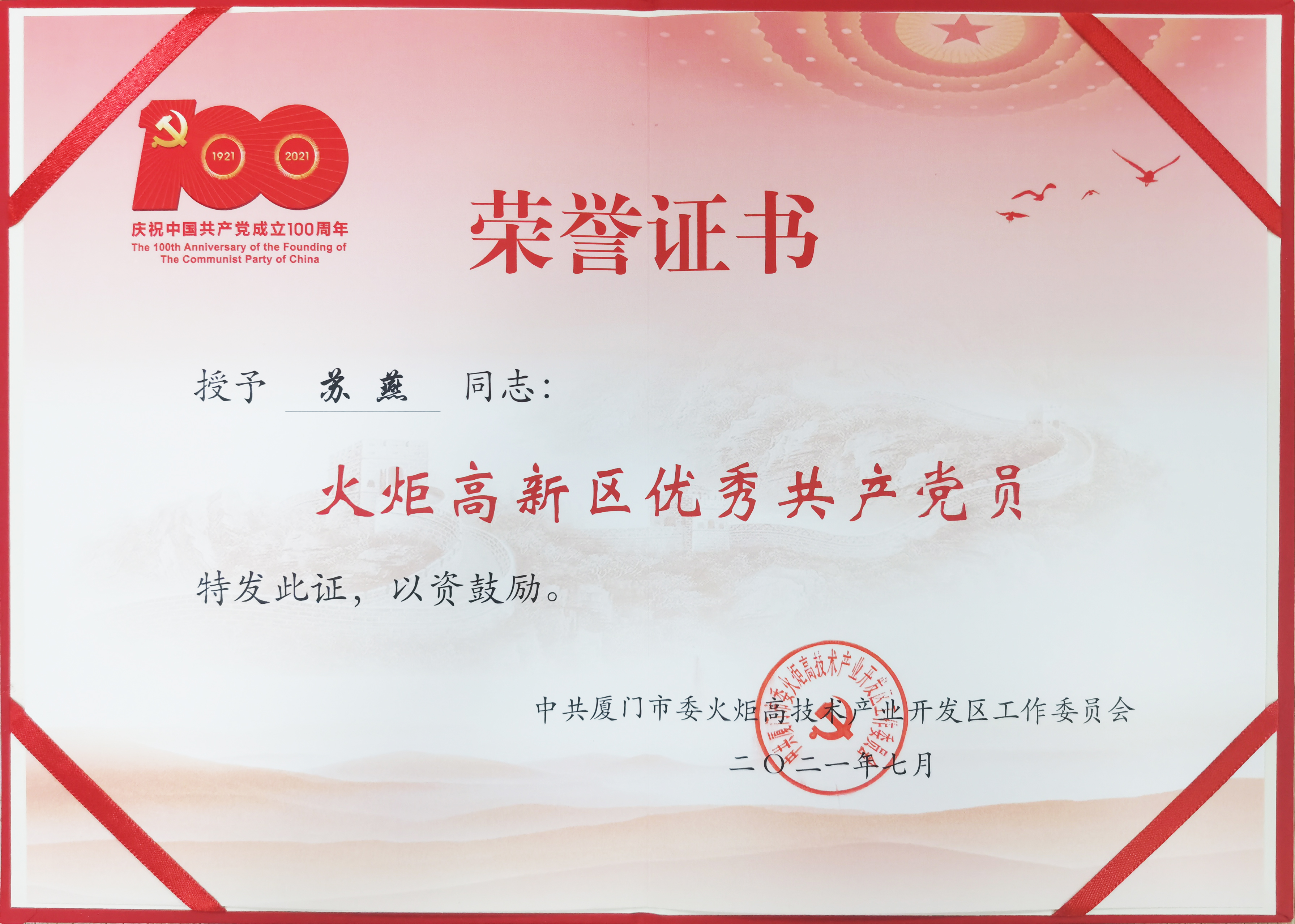 同時,乾照光電黨總支第一黨支部榮獲“先進基層黨組織”,第三黨支部宣傳委員蘇燕同志榮獲“優秀共產黨員”榮譽稱號。