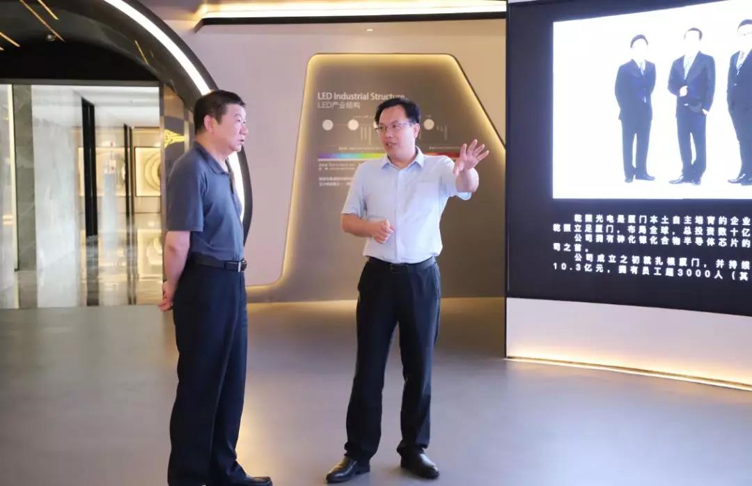 7月4日,廈門市科技局局長孔曙光一行蒞臨乾照光電調(diào)研指導(dǎo)。市科技局綜合處處長黃穎、科技合作與成果轉(zhuǎn)化處處長吳志偉、高新處處長陳君玉陪同調(diào)研。乾照光電總裁蔡海防,未來顯示研究院院長柯志杰等公司領(lǐng)導(dǎo)陪同接待。