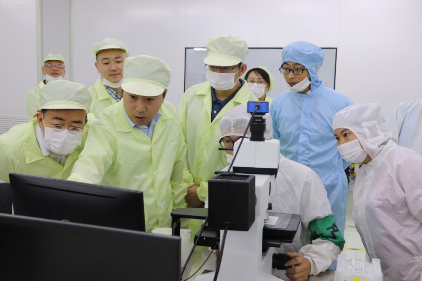 隨后,考察組一行前往生產(chǎn)車間進(jìn)行參觀,朱局長仔細(xì)觀摩了藍(lán)綠芯片的生產(chǎn)制作流程和芯片的質(zhì)檢工作程序,對公司的發(fā)展現(xiàn)狀表示了充分的肯定。