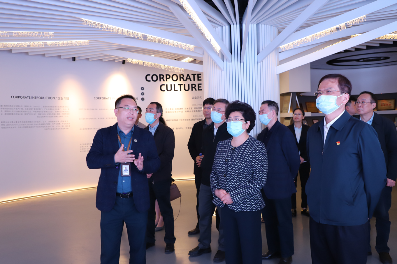 隨后,調(diào)研組前往車間進行實地調(diào)研。吳主任關(guān)心的詢問了公司目前人才引進及生產(chǎn)發(fā)展情況。蔡海防表示,目前乾照光電已與多所高校合作,不斷引進高端技術(shù)人才;生產(chǎn)發(fā)展方面,公司引進行業(yè)先進技術(shù)設(shè)備,在產(chǎn)品研發(fā)方面已實現(xiàn)Mini/Micro LED量產(chǎn)的研發(fā)與生產(chǎn),不斷推動Mini/Micro LED技術(shù)產(chǎn)品化,努力為LED產(chǎn)業(yè)技術(shù)提升和產(chǎn)品升級貢獻應(yīng)盡之力。