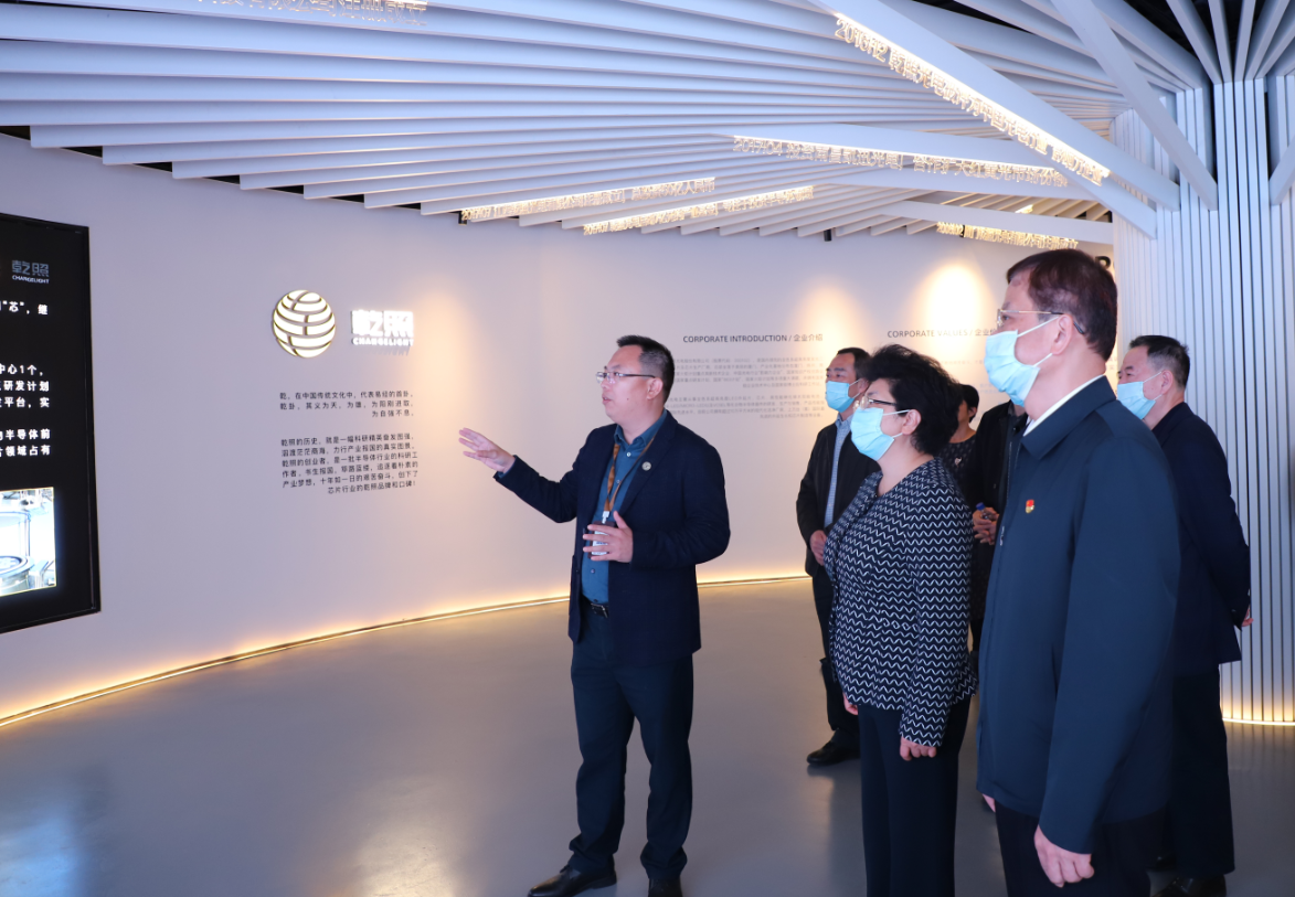 吳洪芹一行首先參觀了公司展廳,詳細了解了公司在高性能砷化鎵太陽電池外延片、Mini-LED/Micro-LED及化合物半導(dǎo)體相關(guān)領(lǐng)域的發(fā)展情況和發(fā)展規(guī)劃。期間,吳洪芹高度肯定了乾照光電當(dāng)前階段取得的成績,并在企業(yè)發(fā)展方面提出了相關(guān)建議。吳洪芹指出,按照省委“再學(xué)習(xí)、再調(diào)研、再落實”要求,認真貫徹落實科技進步“一法一例”,大力實施創(chuàng)新驅(qū)動發(fā)展戰(zhàn)略,提高科技自立自強能力,不斷壯大高質(zhì)量發(fā)展超越新動能;要強化人才培養(yǎng)引進,激發(fā)人才創(chuàng)新創(chuàng)業(yè)創(chuàng)造活力;支持高校、科研院所、企業(yè)組建創(chuàng)新聯(lián)合體,推動協(xié)同創(chuàng)新。