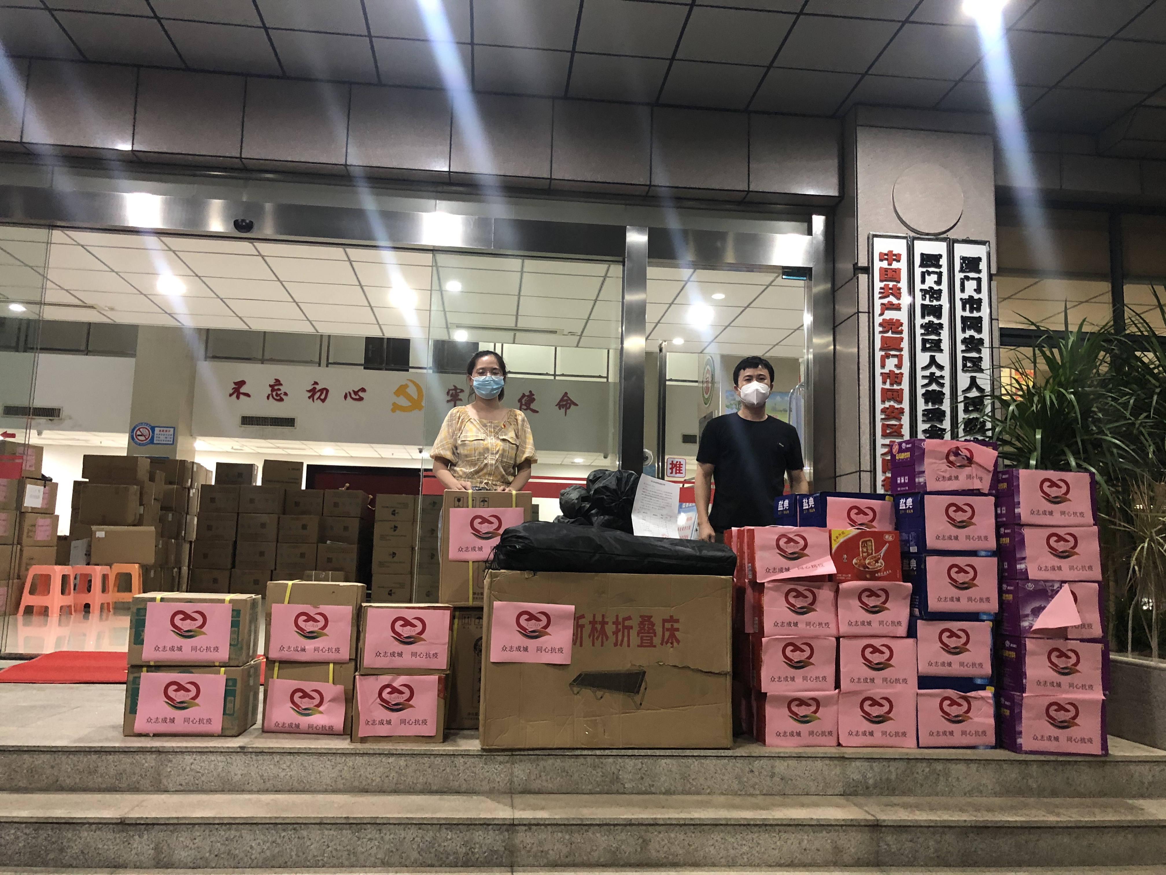 與此同時,公司助力防疫,捐贈物資慰勞辛苦的一線基層人員。9月18日,公司分別向馬巷街道后濱社區、派出所進行愛心物資捐贈。9月28日,公司工會通過同心兒童院的志愿者,向同安區備戰在防疫一線的工作人員捐贈折疊床、功能性飲料等物資,為廈門抗疫盡綿薄之力。