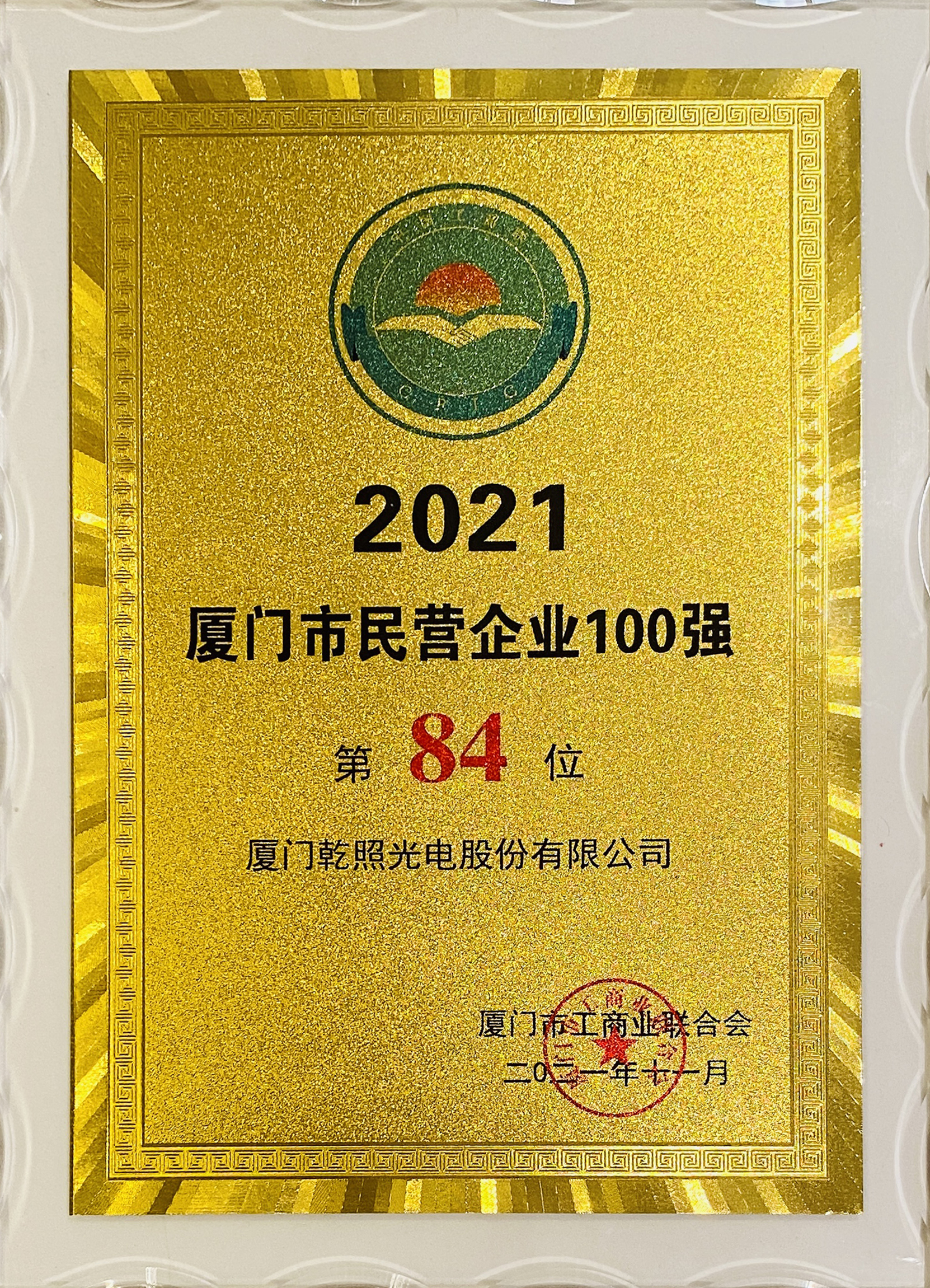 七、乾照光電榮獲“2021福建戰略性新興產業企業100強”&“2021廈門市民營企業100強”