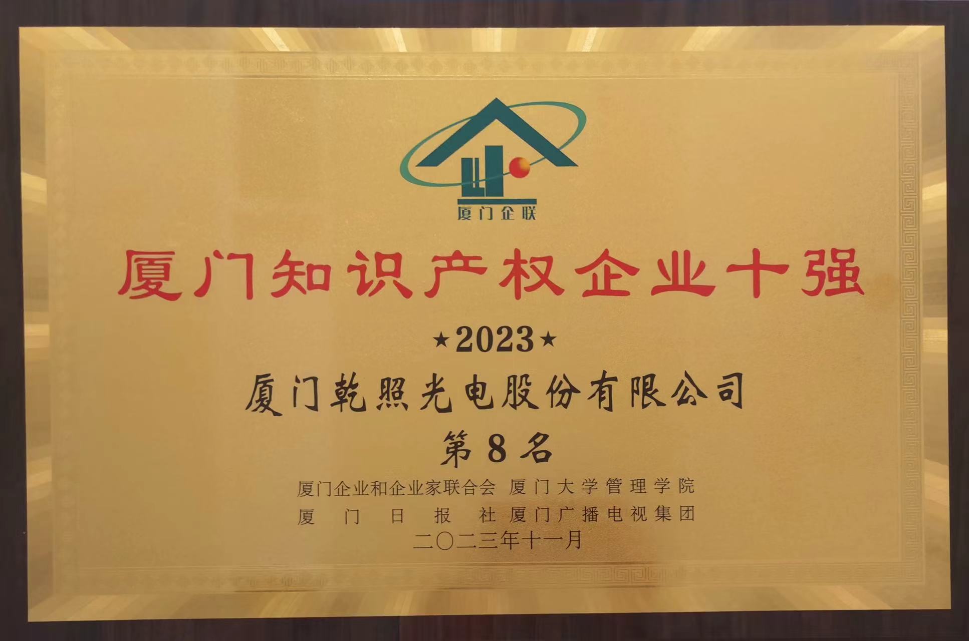 乾照光電榮獲“廈門知識(shí)產(chǎn)權(quán)企業(yè)十強(qiáng)”稱號(hào)