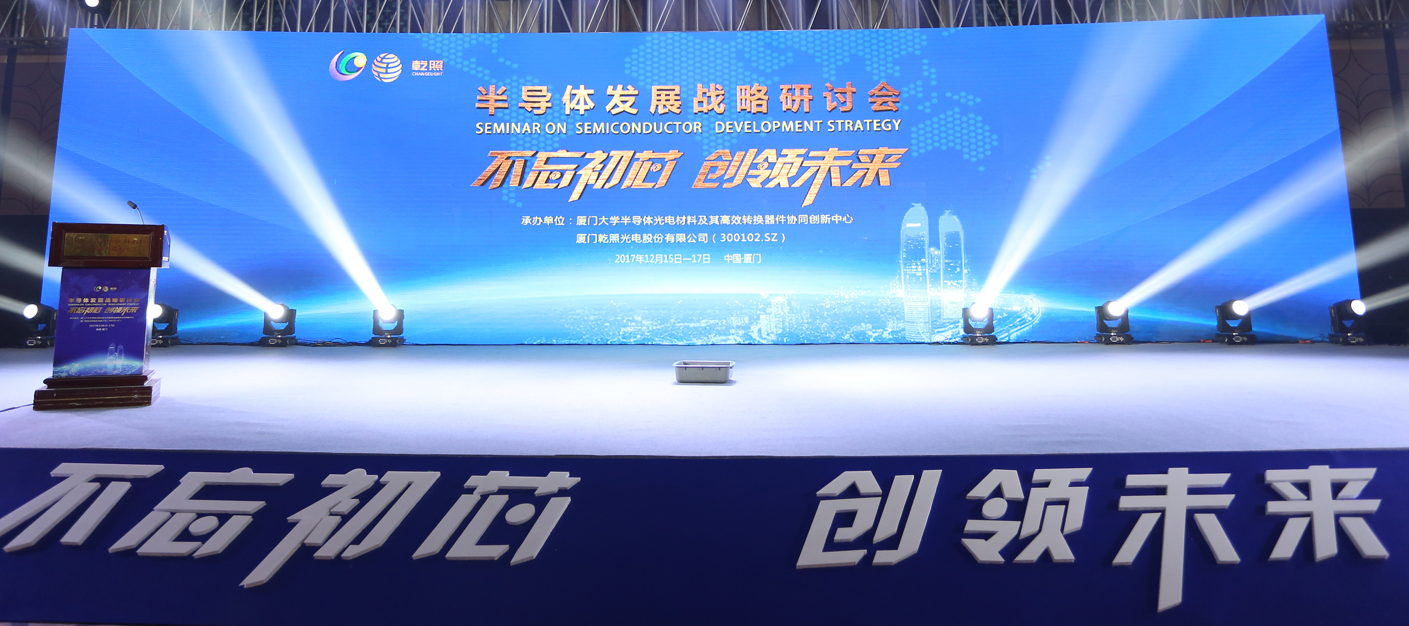 不忘初芯,創領未來。2017年12月16日,由廈門大學半導體光電材料及其高效轉換器件協同創新中心與廈門乾照光電股份有限公司共同承辦的“半導體發展戰略研討會”圓滿落幕!現場超200位參會人員圍繞“不忘初芯,創領未來”這一主...