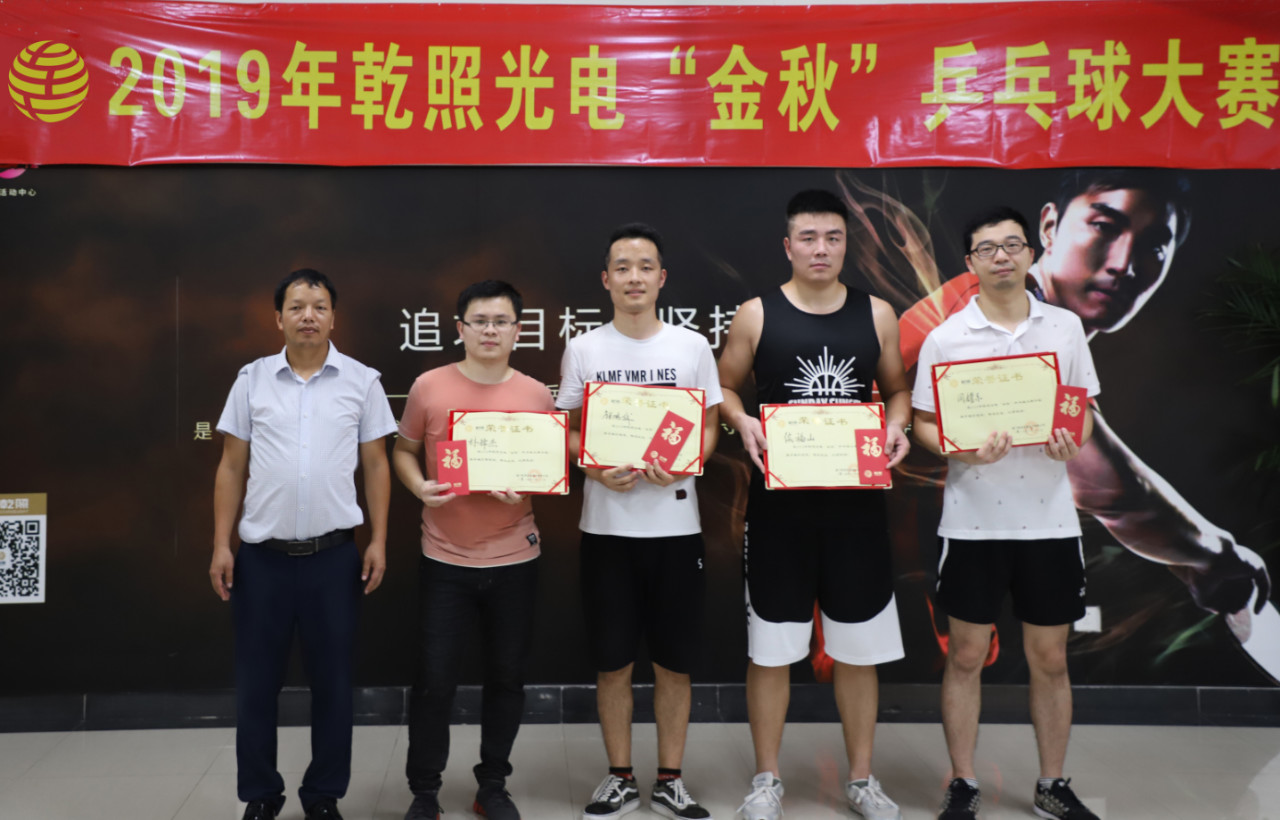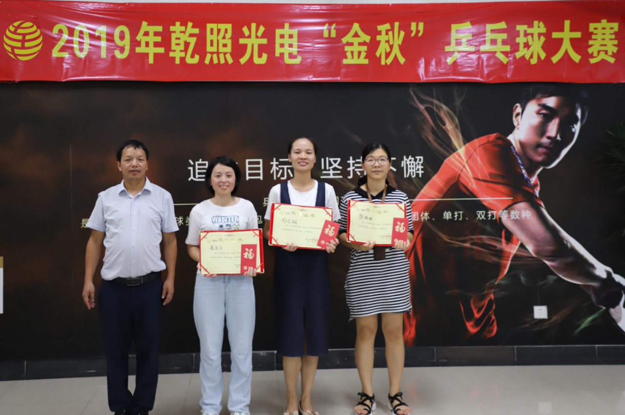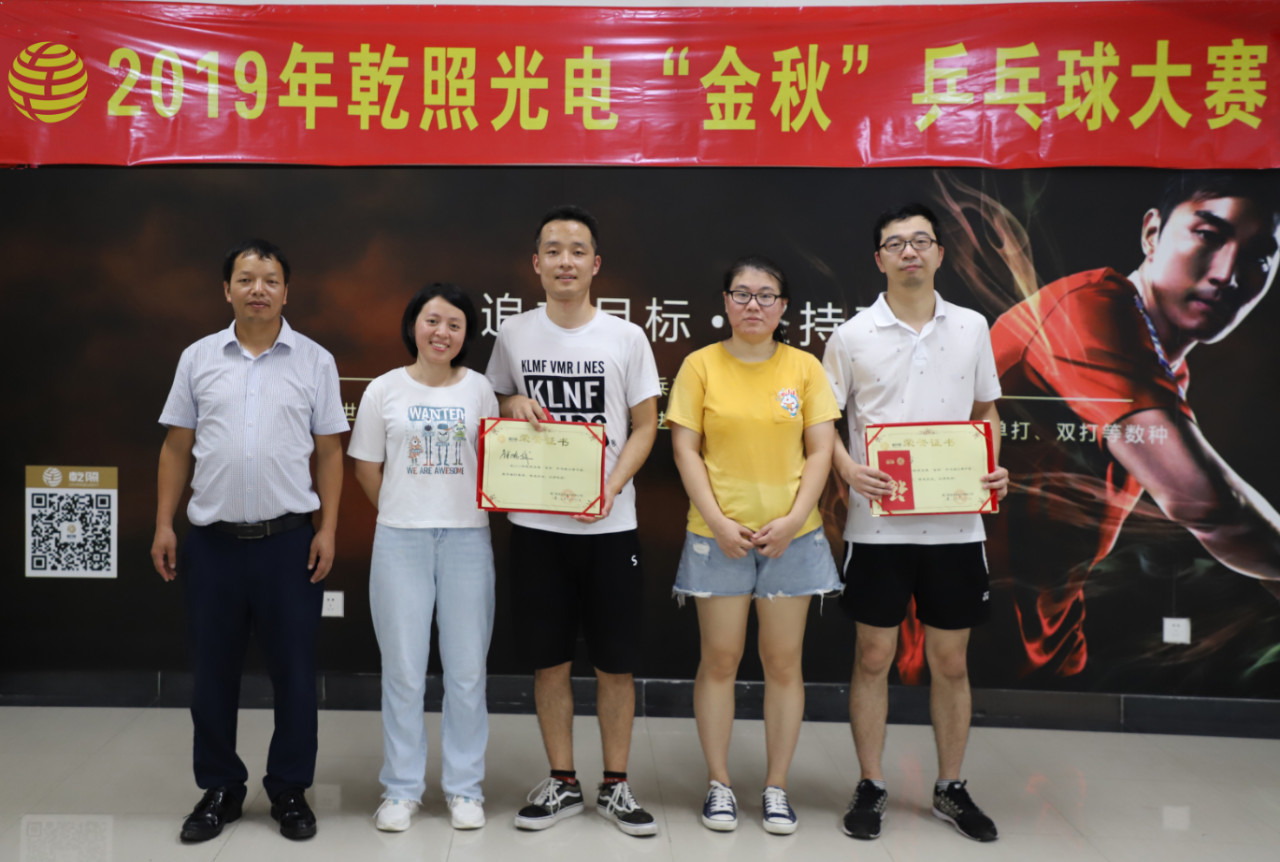 8月19日—26日,乾照光電乒乓球社舉辦了2019年乒乓球大賽。經過海選賽、復賽、半決賽和決賽的激烈角逐,最終品管部周耀東、芯片制造部侯福山、總裁辦解鵬越、整合部林鋒杰分別獲得男子單打冠、亞、季軍和第四名;品管部顏姍姍、未來顯示研究院段方方和銷售管理部林志鋌分別獲得女子單打冠、亞、季軍;品管部周耀東、技術中心陳婉菁和總裁辦解鵬越、未來顯示研究院馮妍雪分別獲得男女混雙冠軍和亞軍。