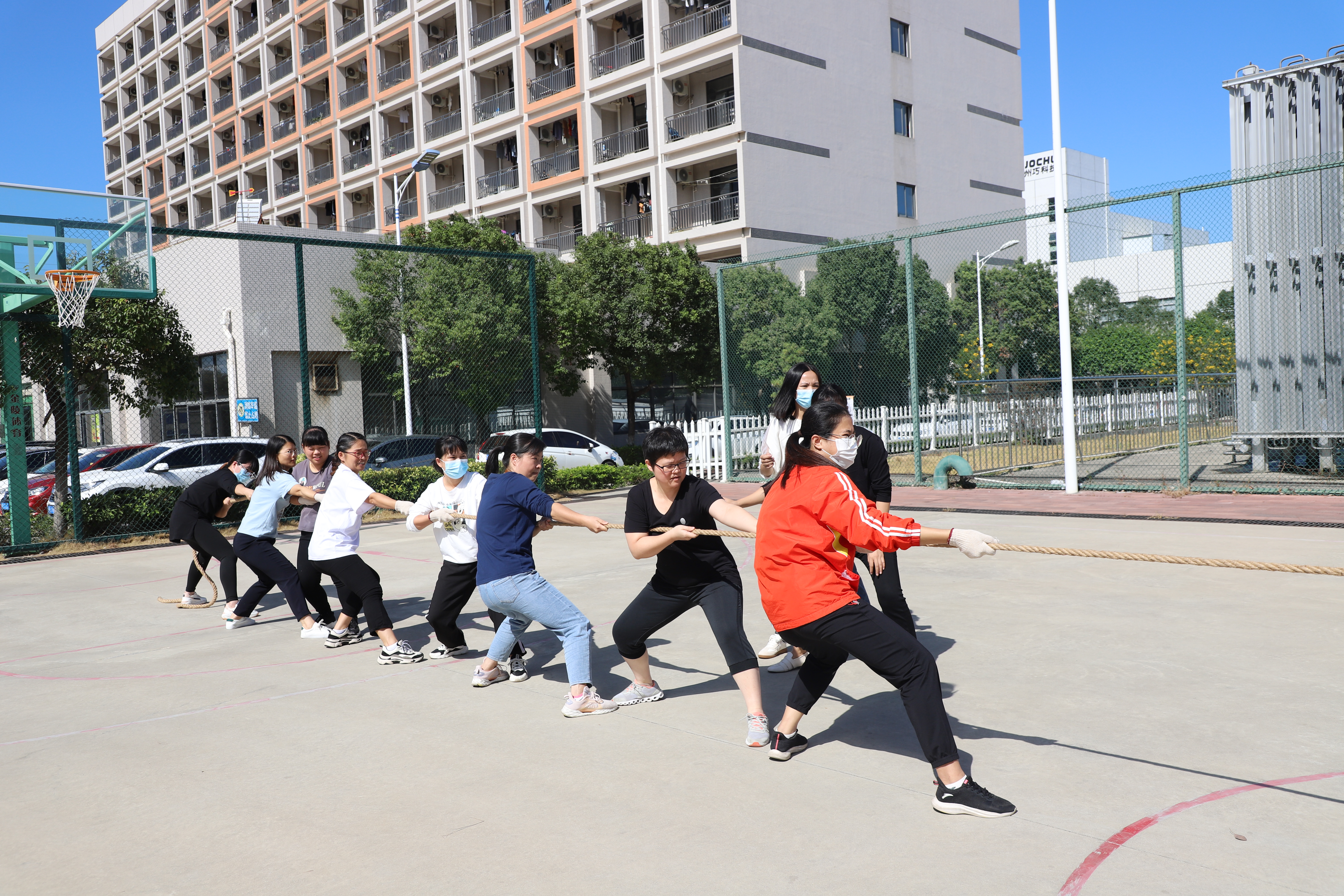 比賽過(guò)程中,無(wú)論場(chǎng)上還是場(chǎng)下,氣氛既緊張又熱烈,富有節(jié)奏的吶喊聲、加油聲,在籃球場(chǎng)上空久久回蕩。參賽選手各個(gè)斗志昂揚(yáng),用他們拼搏的精神為我們?cè)忈屃藞F(tuán)結(jié)的含義。尤其在勝負(fù)難分的時(shí)刻,他們毫不退卻,咬緊牙關(guān),堅(jiān)持到底,頑強(qiáng)的意志感染現(xiàn)場(chǎng)每一個(gè)人。加油助威的員工各個(gè)熱情高漲,每一聲吶喊都帶來(lái)一股力量。